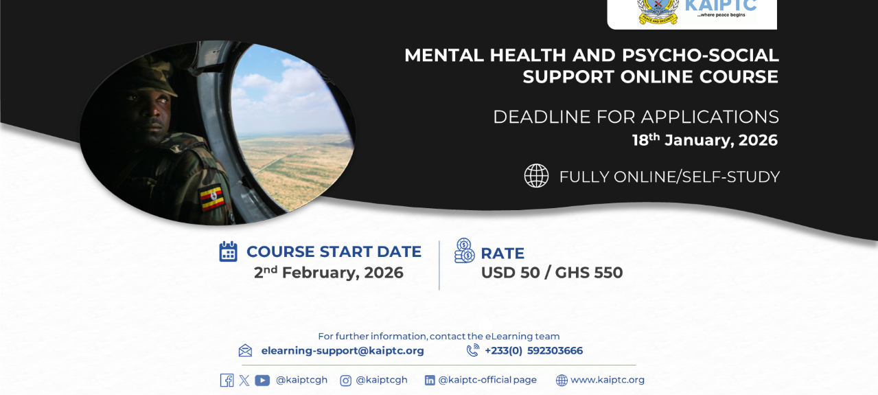 The course aims at enhancing the capacity of participants to respond effectively to mental health and psychosocial issues in Peace support Opeartions.